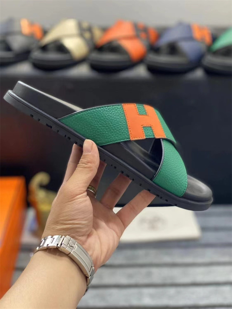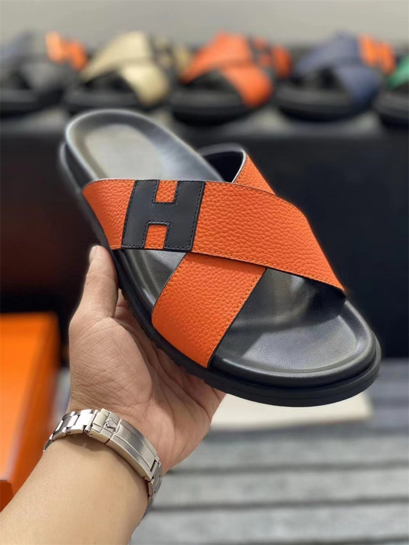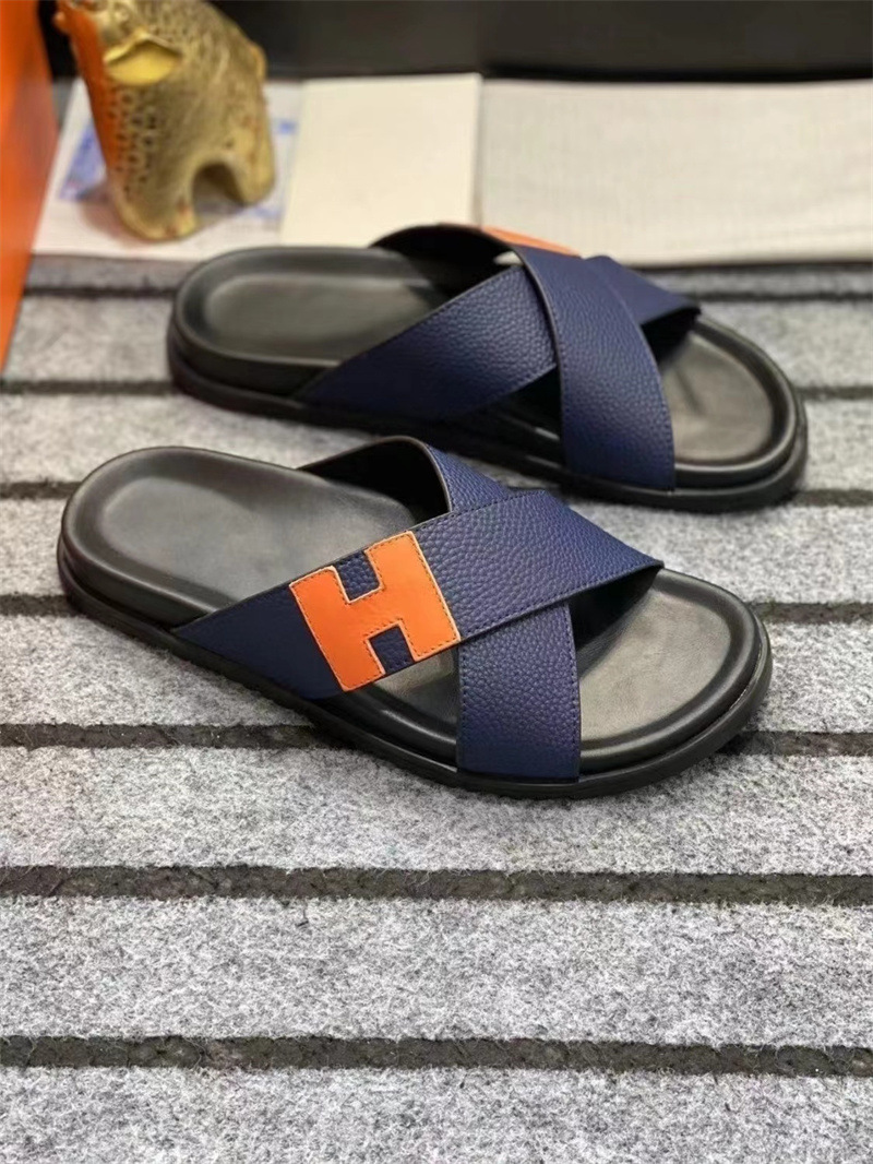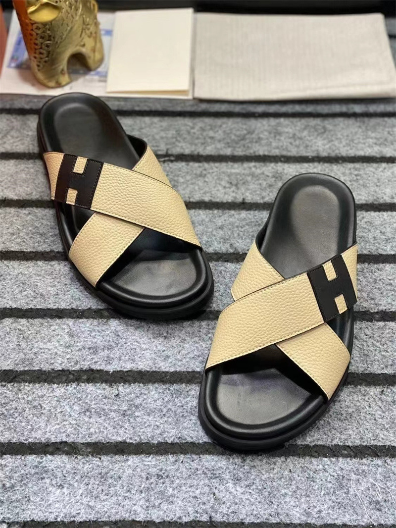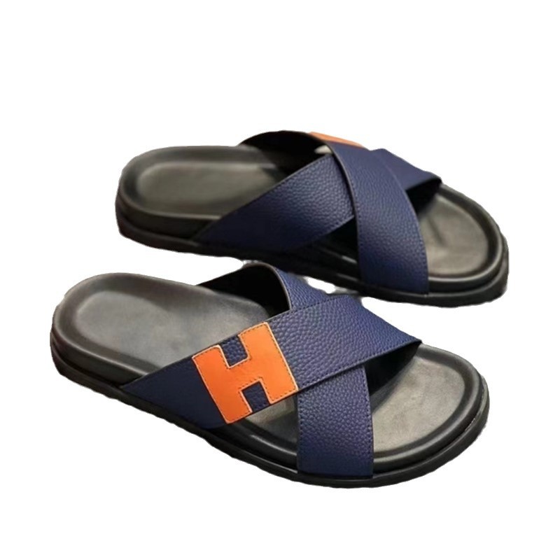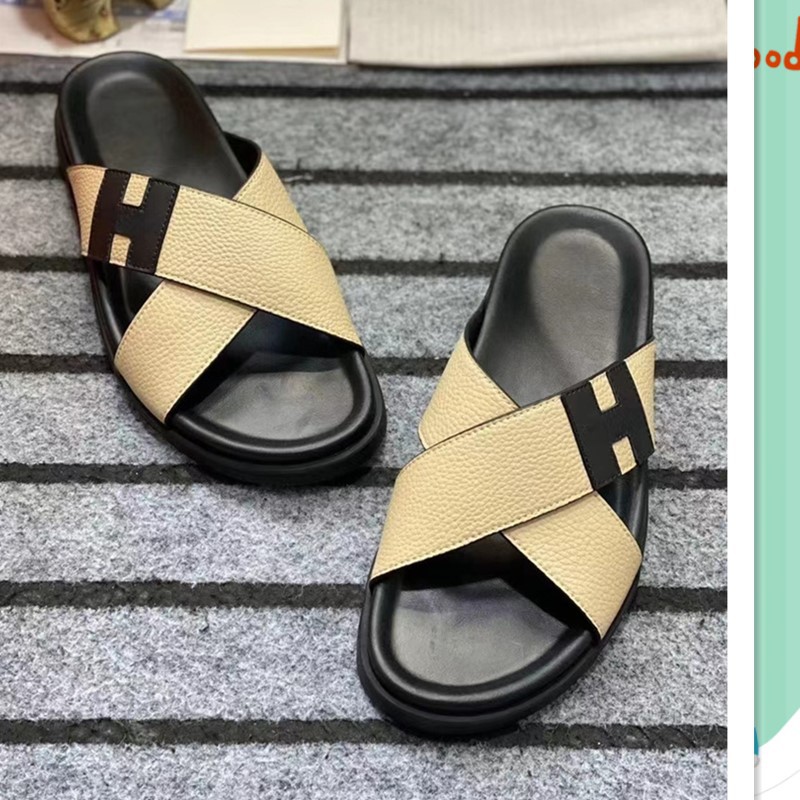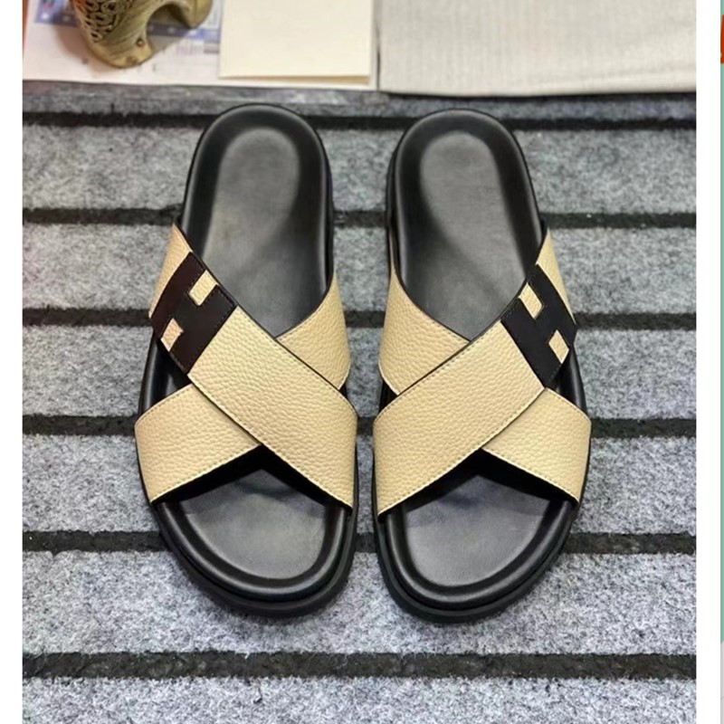 European Station One to One Men's Shoes Leather Casual Slippers New Anti slip Beach Shoes Sandals Breathable and Comfortable Outerwear Men