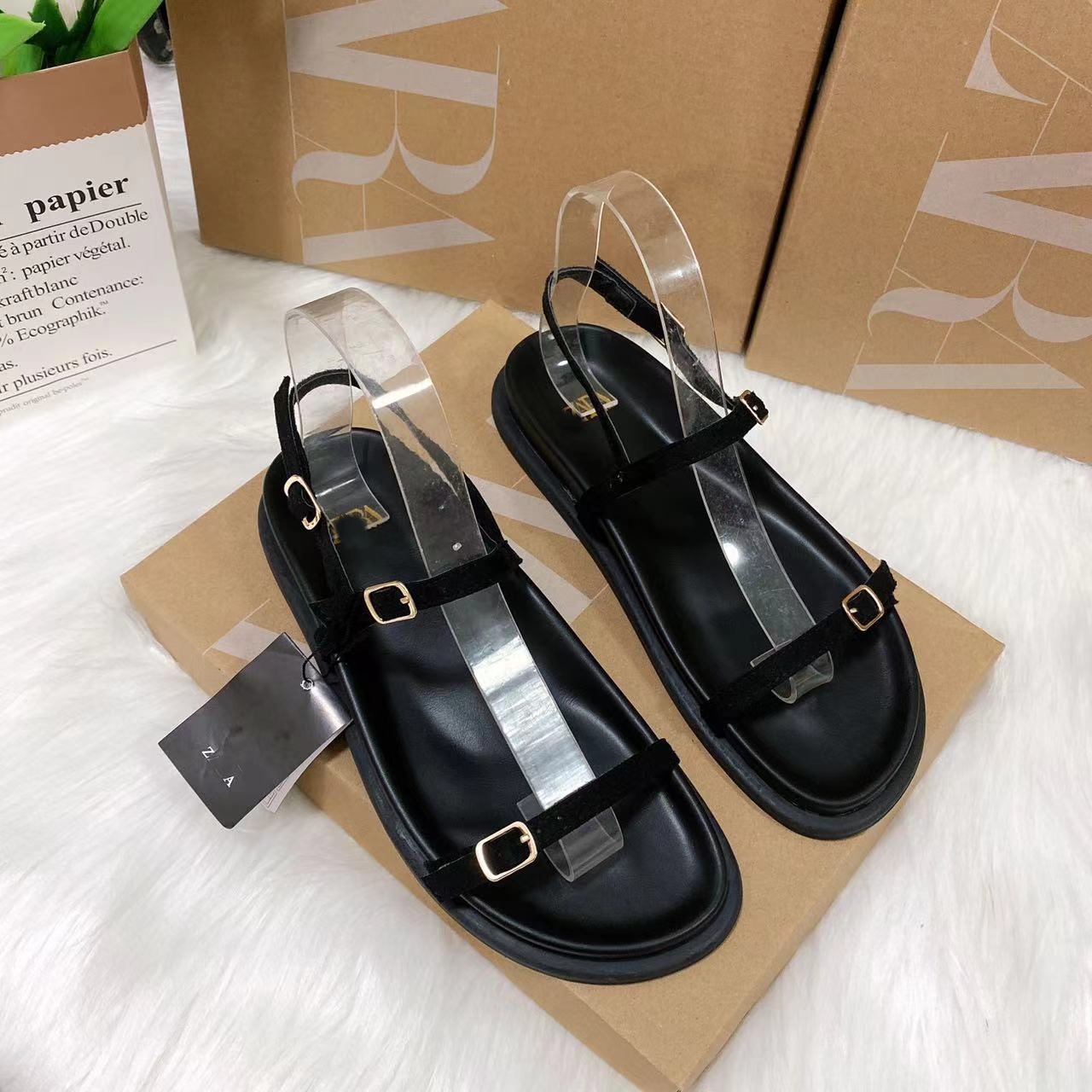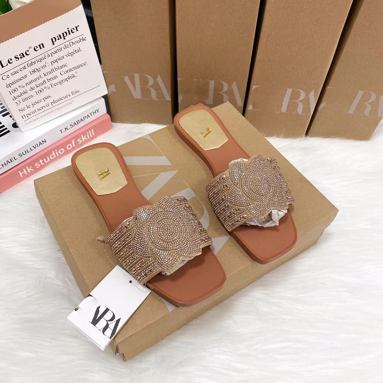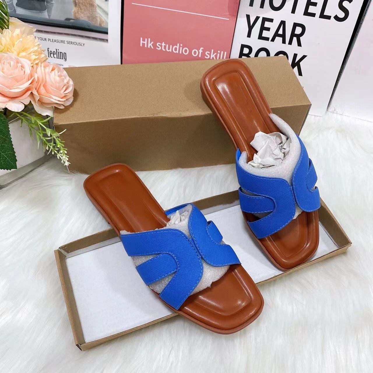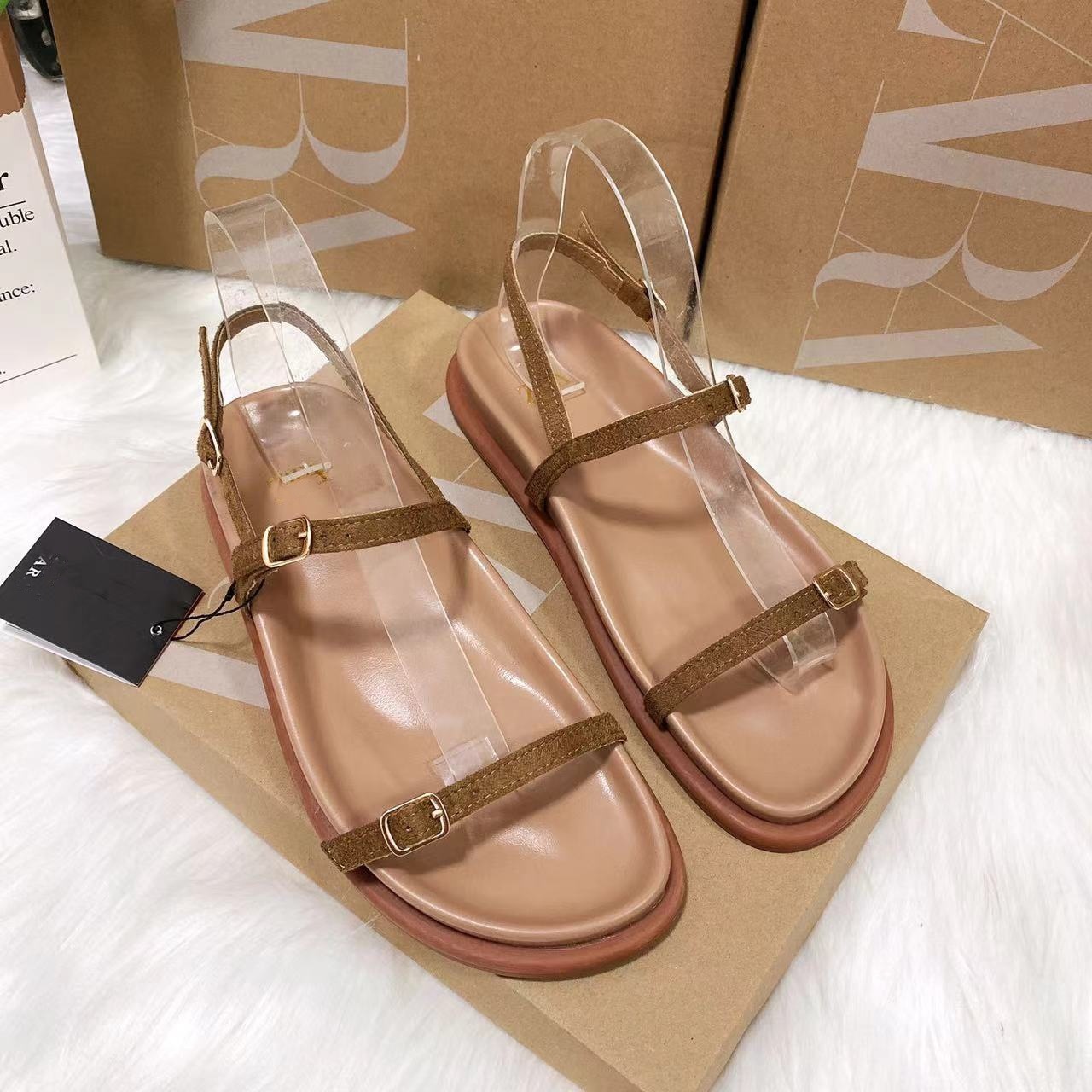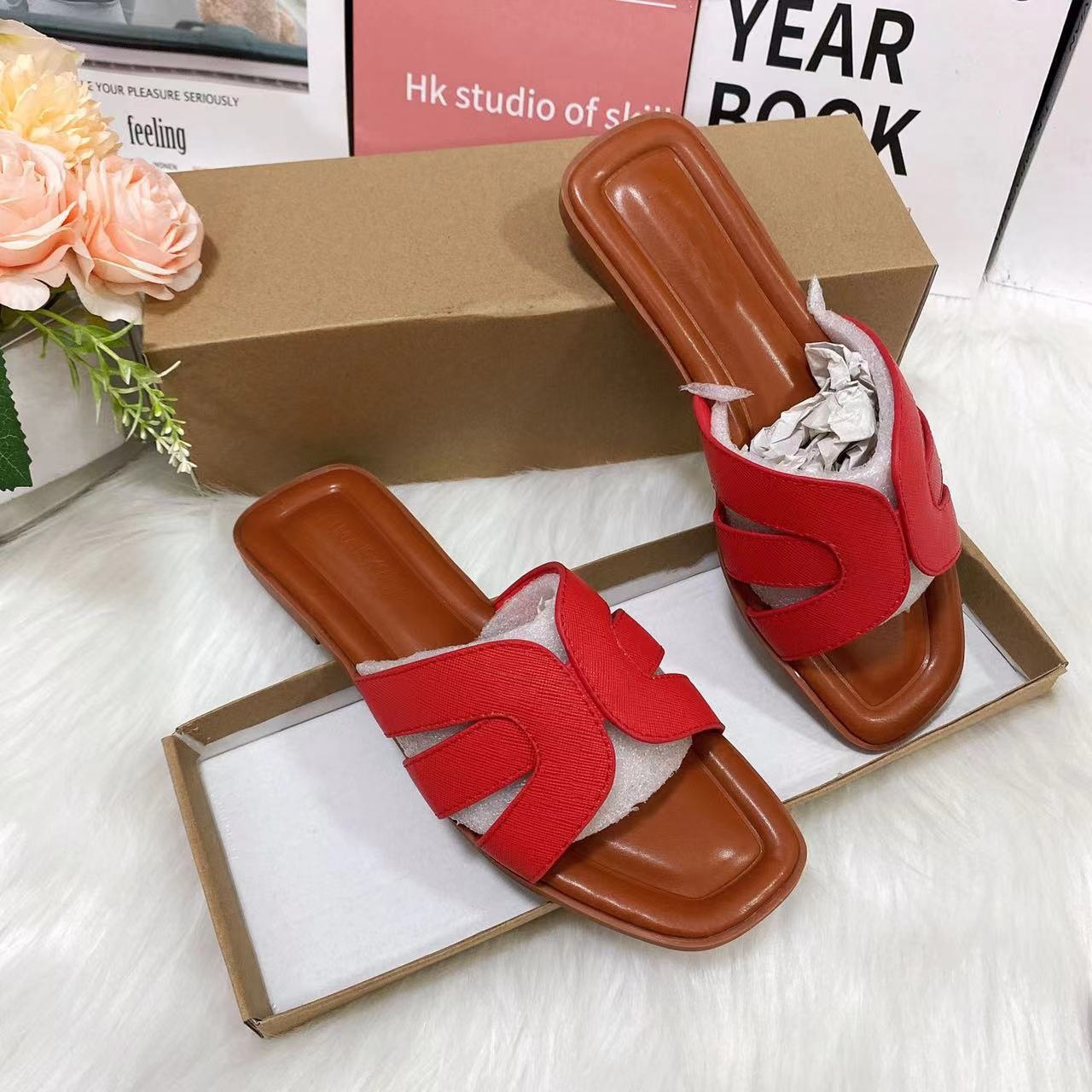 Ins cross-border new European and American plus size sponge cake one line slippers solid color flat bottom decoration buckle thick bottom women's shoes