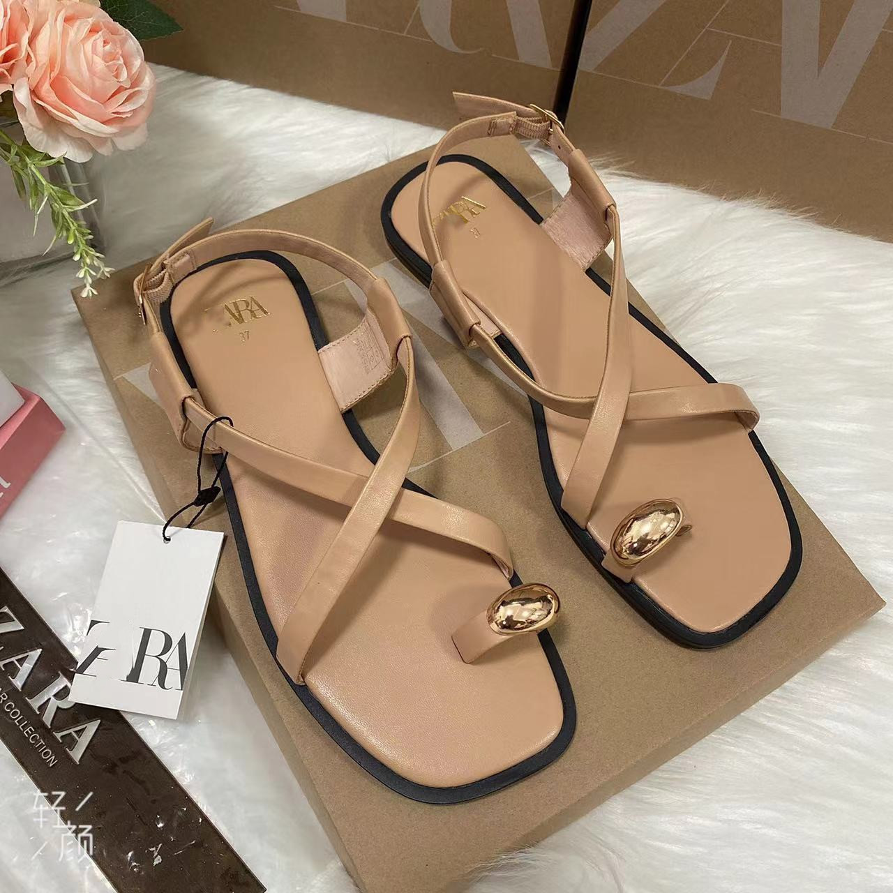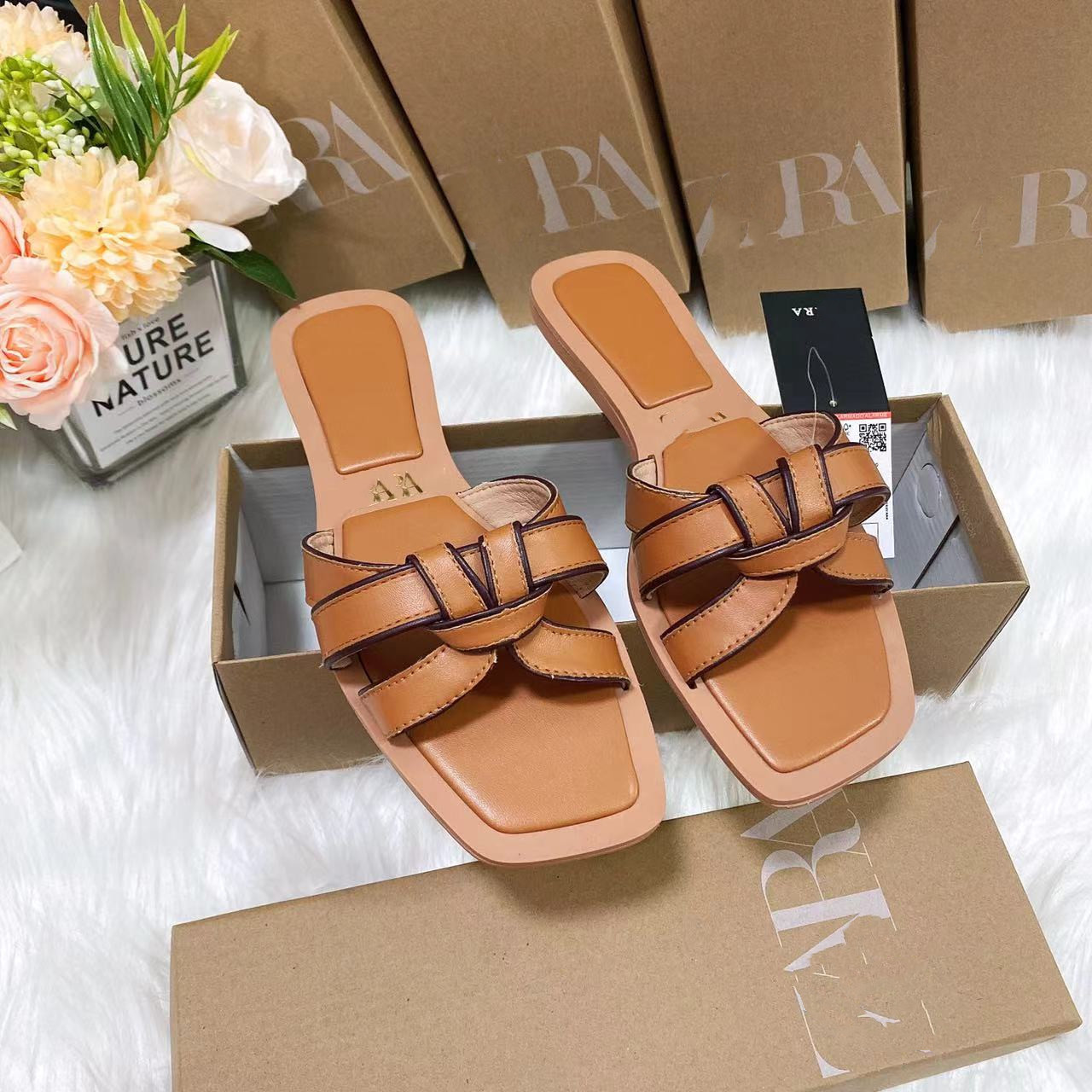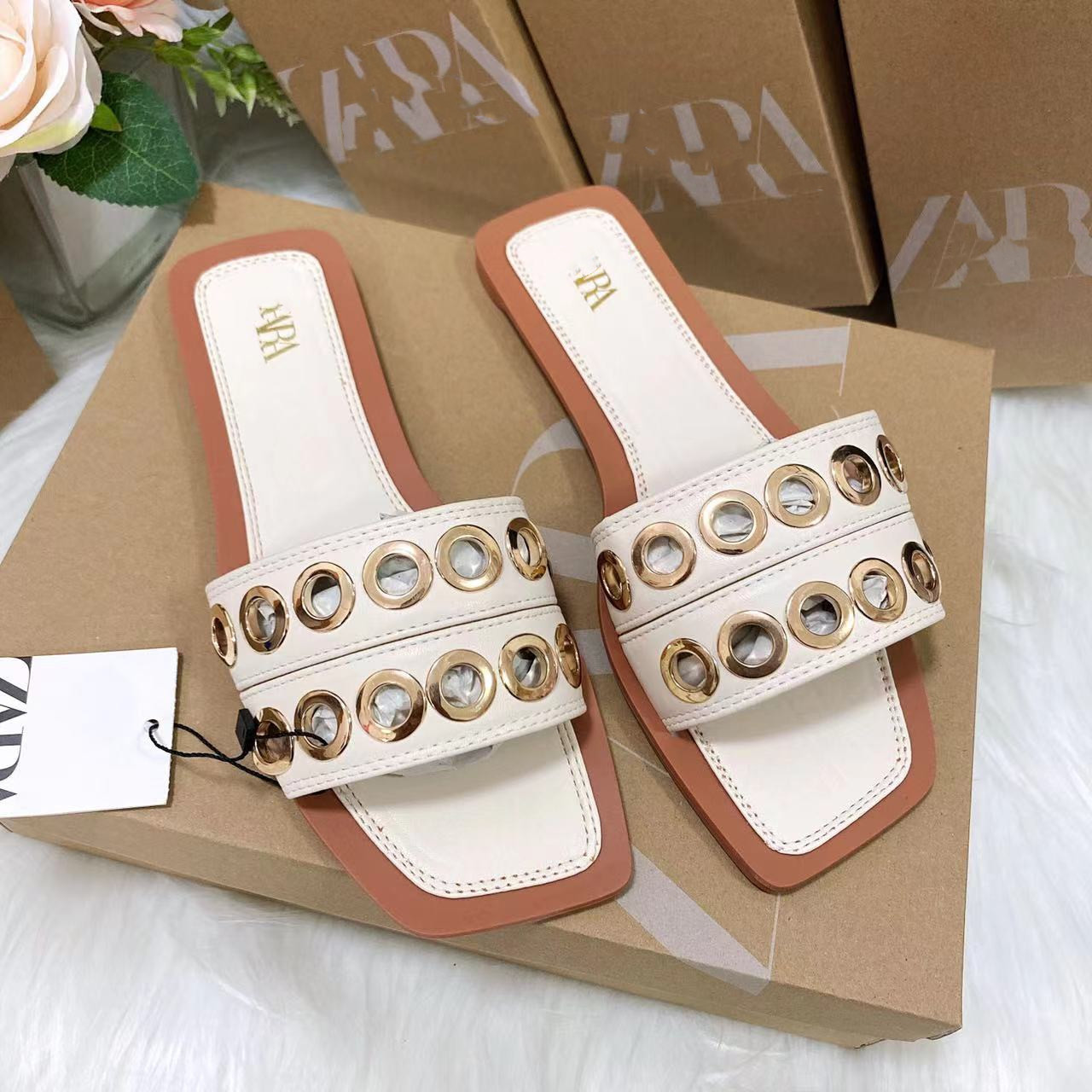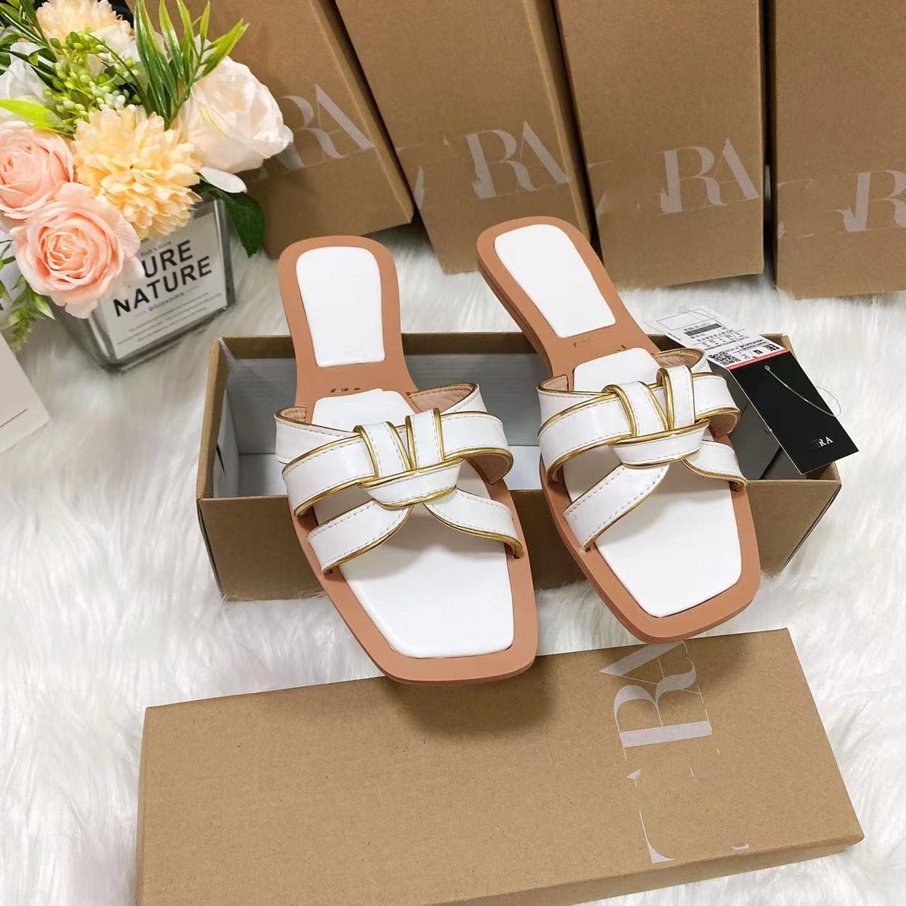 Ins cross-border new European and American plus size sponge cake one line slippers solid color flat bottom decoration buckle thick bottom women's shoes