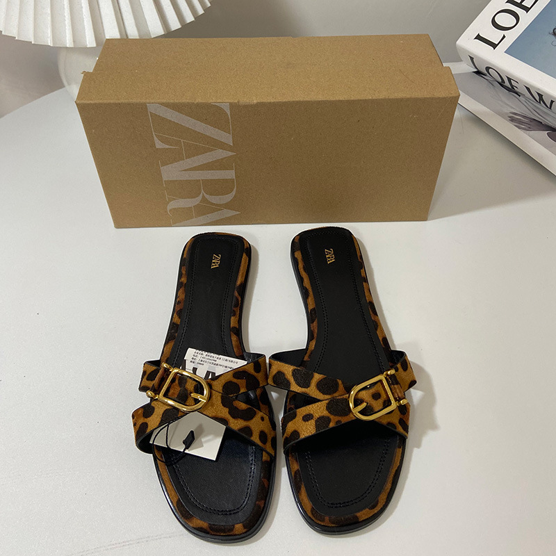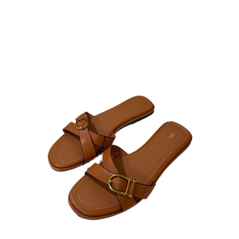 ZA flat bottomed women's shoes for spring and summer 2024, fashionable and versatile. Color blocked cross strap French shallow mouth sandals for women