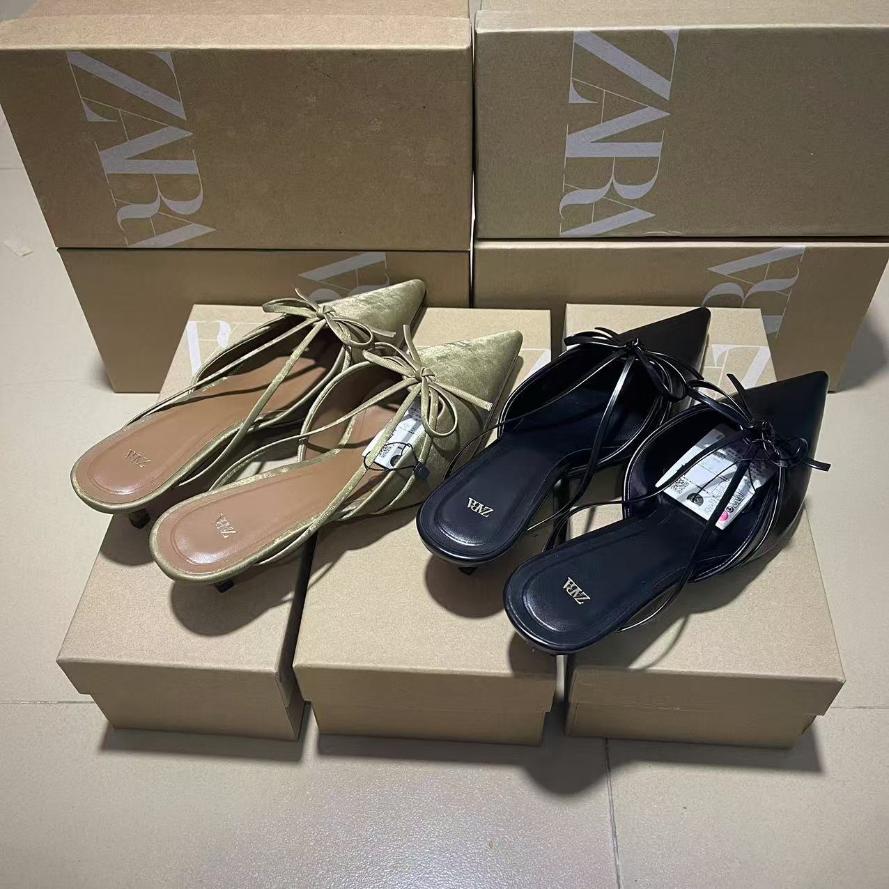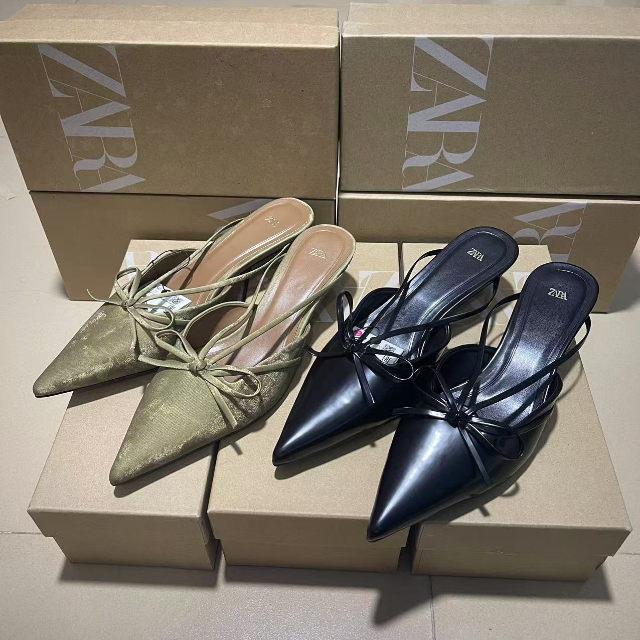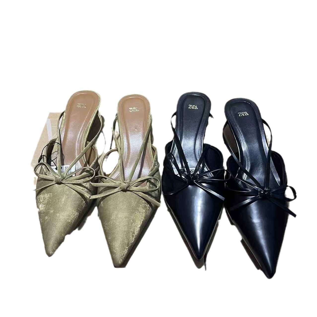 ZA2024 Autumn New Bow Pointed High Heels Women's Cat Heels Muller Shoes Non tiring Foot Temperament Baotou Sandals