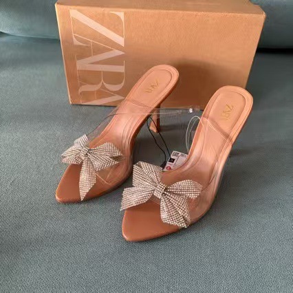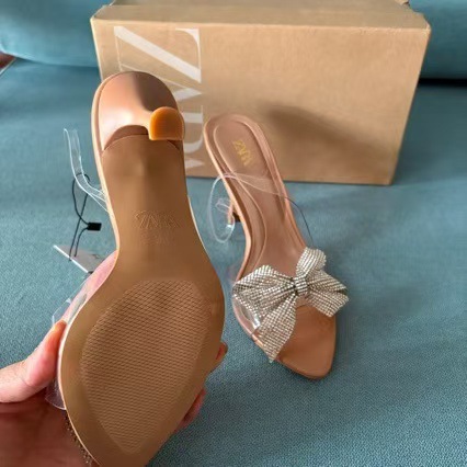 2024 Foreign Trade New Style Square Head Fine Heel Bow Water Diamond Large Hollow Rear Air Sandals for Women Wish Wholesale