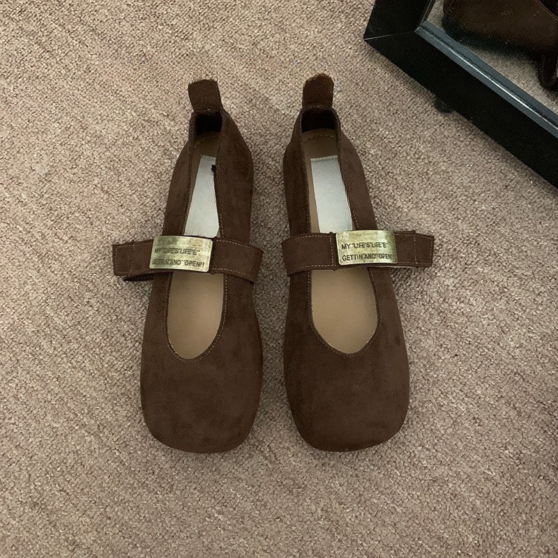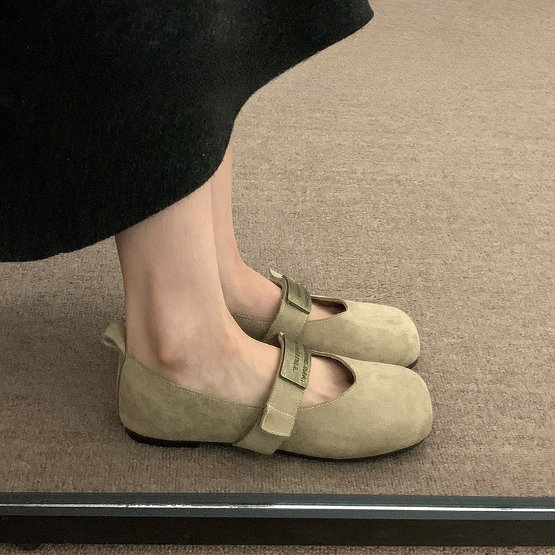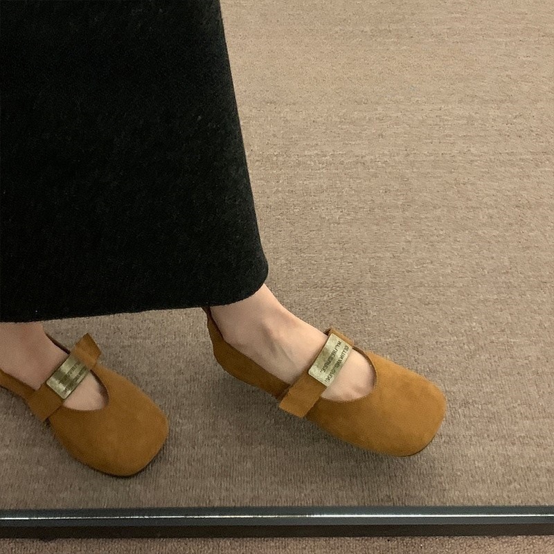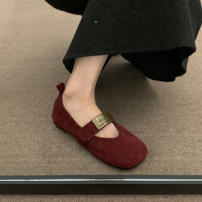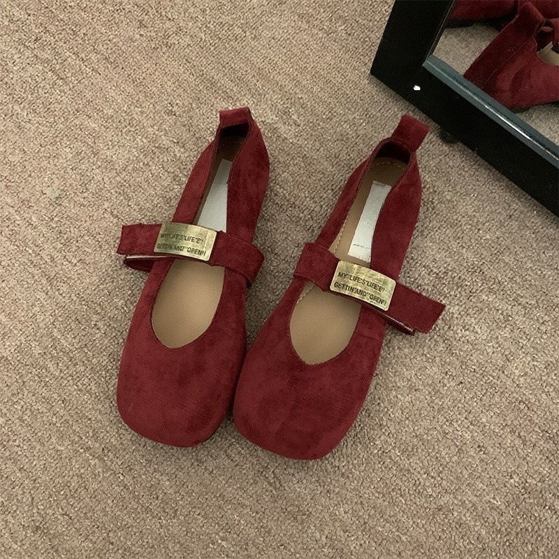 Flat suede Mary Jane shoes women's shoes 2025 Spring and Autumn new red wedding shoes light mouth single shoes