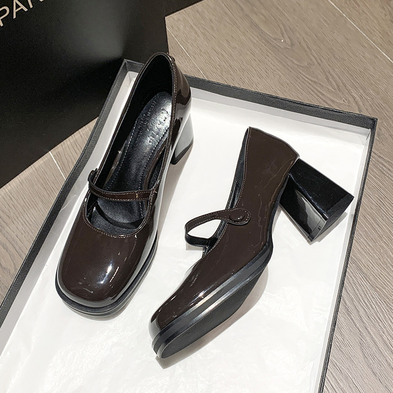 2025 Spring/Summer New French Retro Minority Design Fashion Strap Square Head High Heels Mary Jane Single Shoes for Women