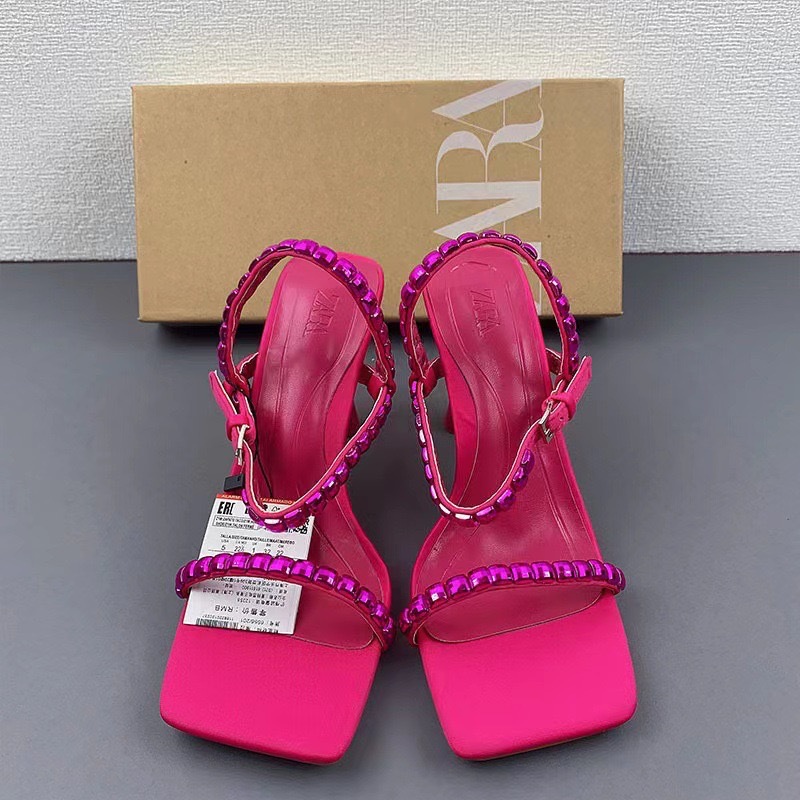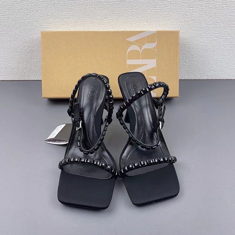 ZA New 2024 Summer Square Head with Water Diamond Wine Glass and High Heels Women's French Casual Rear Air Sandals Women