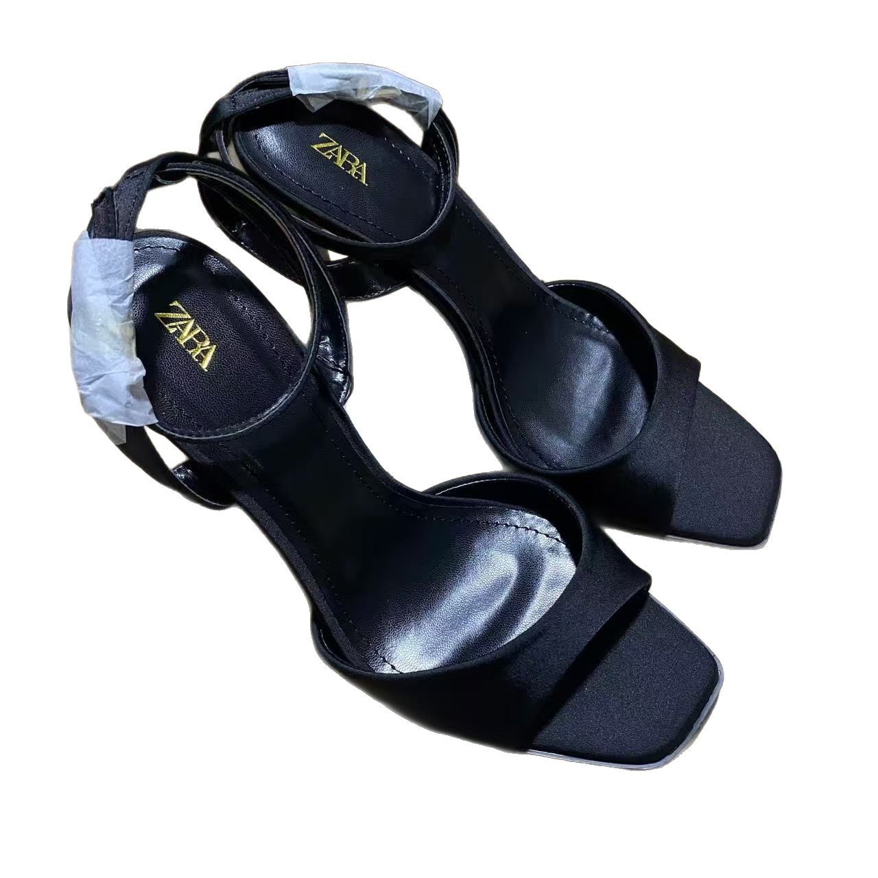 ZA New Product 2025 Spring/Summer French High Heels, Thin Heels, Shallow Mouth High Heels, Style Strap, Black Rice Fashion