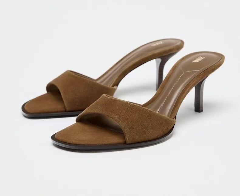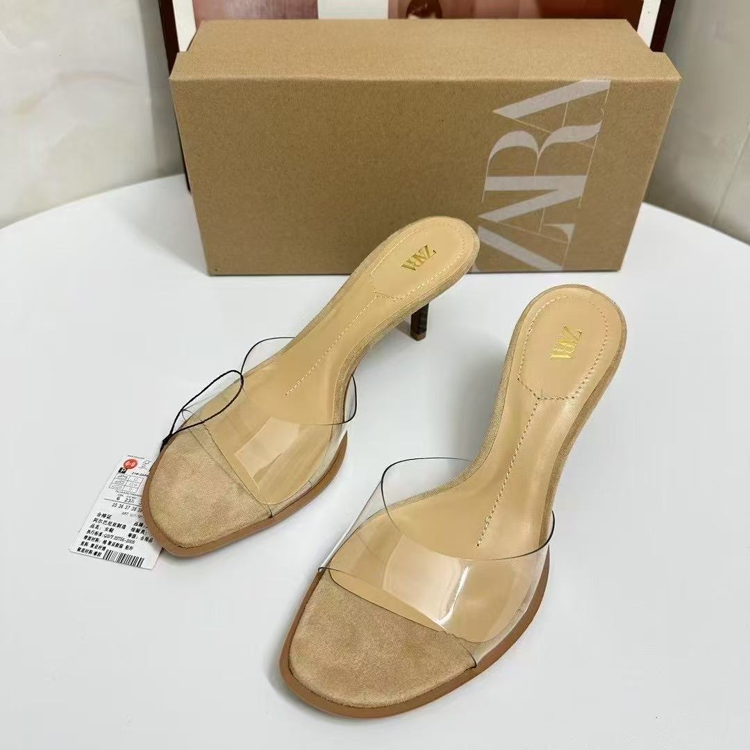 ZA2025 Summer Cool Slippers for Women, Wearing Thin Heels with Empty Heels, Transparent Straight Slippers, Crystal Heels, Cool Slippers for Women