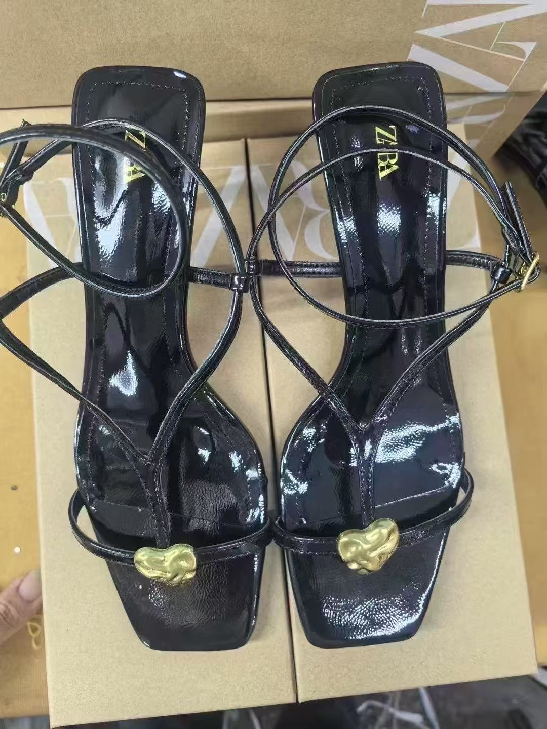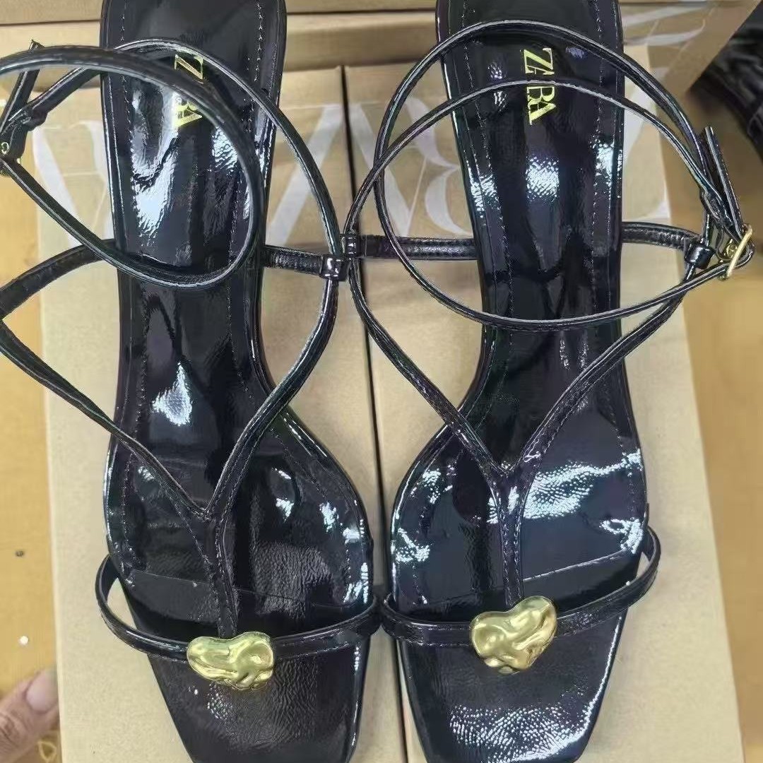 ZA Summer New Product 2025 Thin Strap High Heels Metal Buckle Decoration Strap Sandals Thin Heels Back Strap Women's Sandals