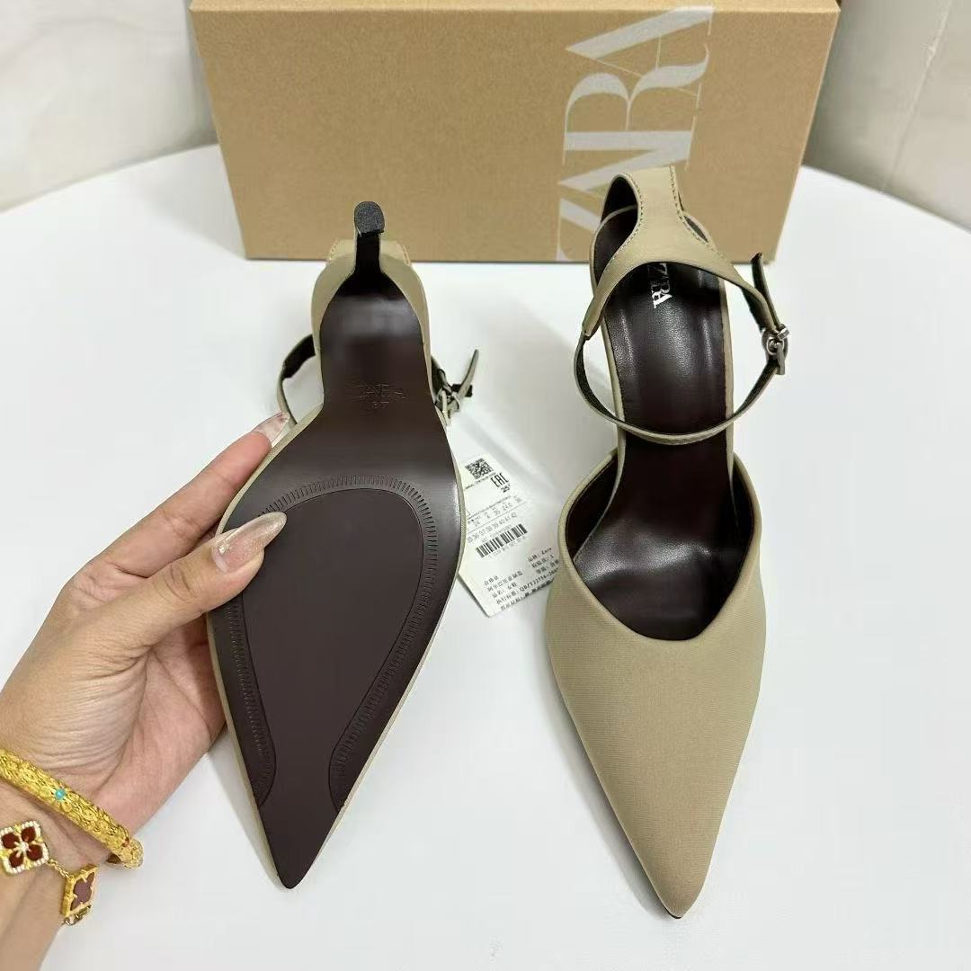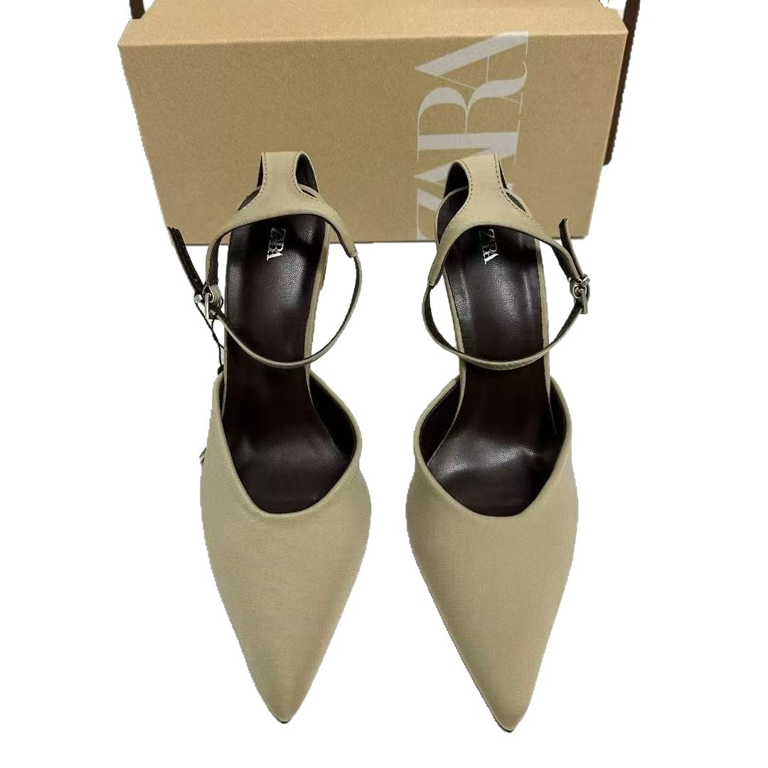 Za25 Baotou Sandals Women's Pointed Shoes Spring New Women's Shoes Thin Heels Black High Heels Temperament Muller Single Shoes