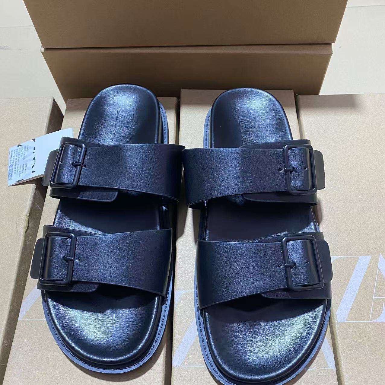 ZA2024 summer new casual one-piece sandals with cow tendon sole, thick soled and height increasing sandals, lazy shoes, trendy outerwear