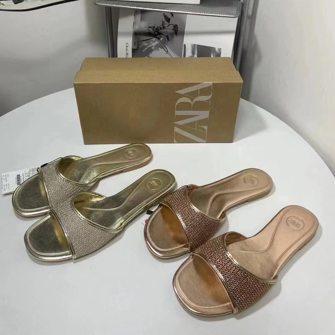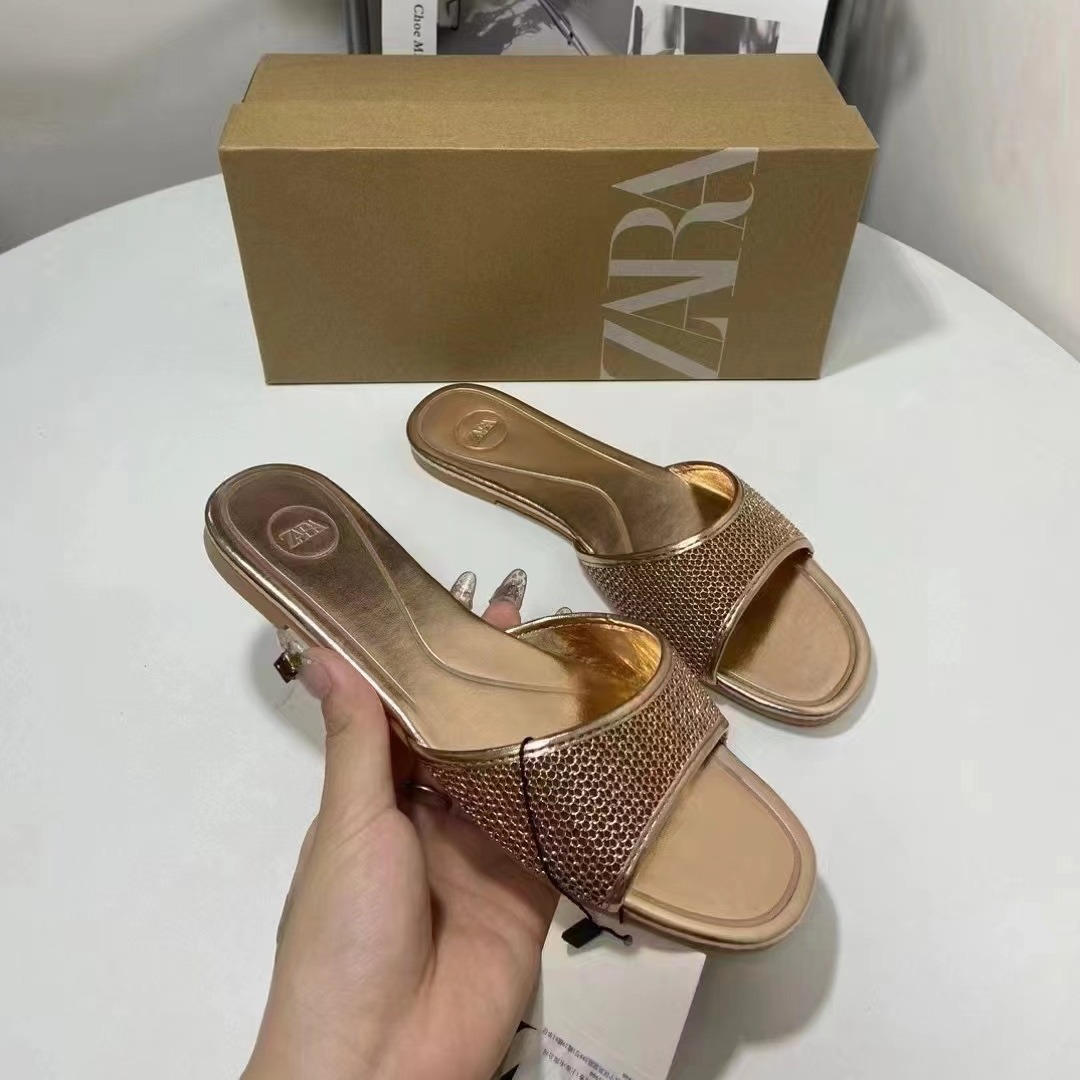 ZA2024 Summer New Fashionable Casual Women's Shoes with Mesh One Word Style and Fairy Style Versatile Beach Shoes for Women