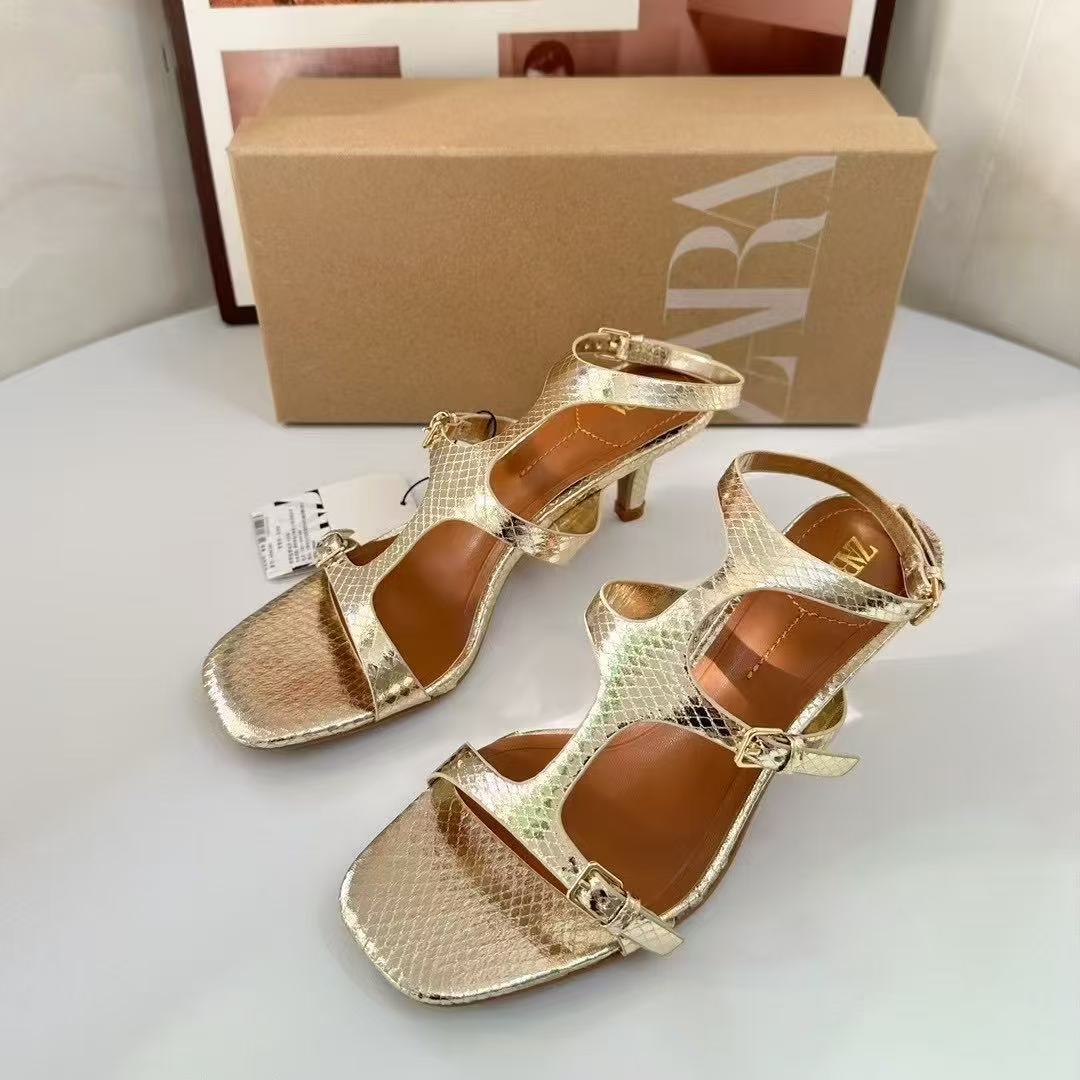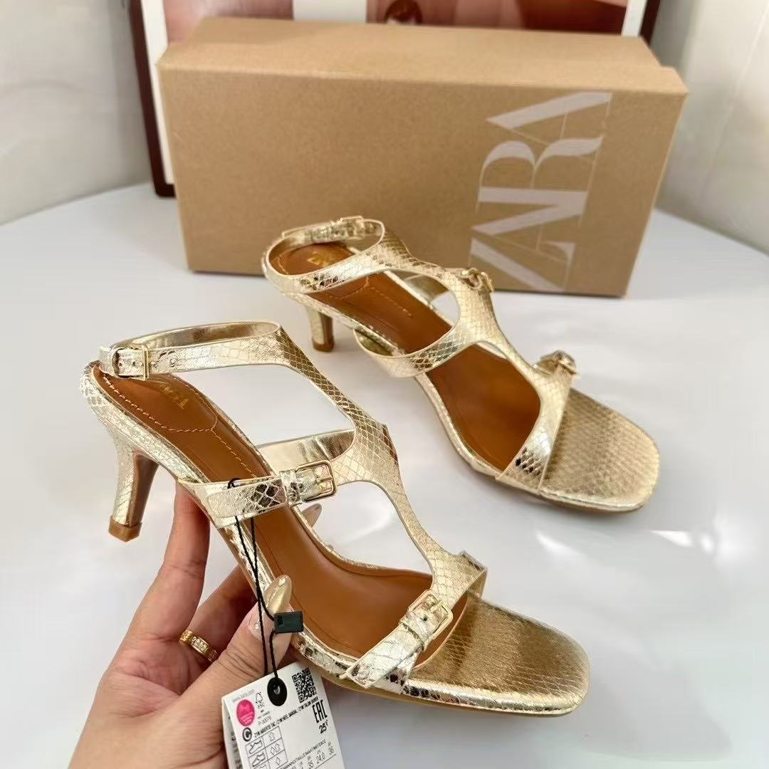 ZA Home 2025 Spring/Summer New Women's Shoes, Low Heel Style, High Heels for Celebrities, Shallow Mouth Rear Tripping Strap, Single Shoes for Women