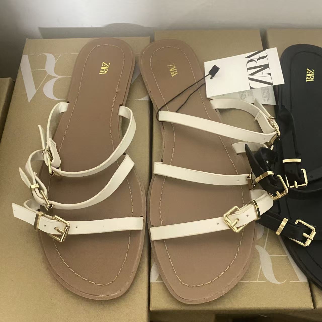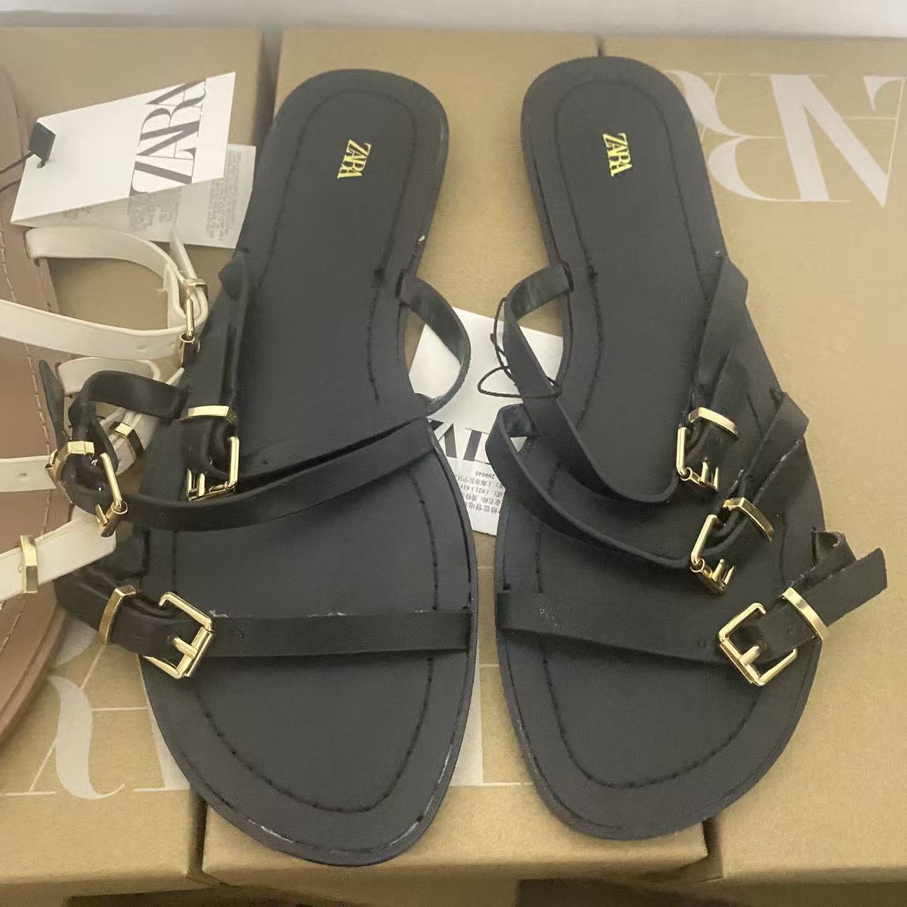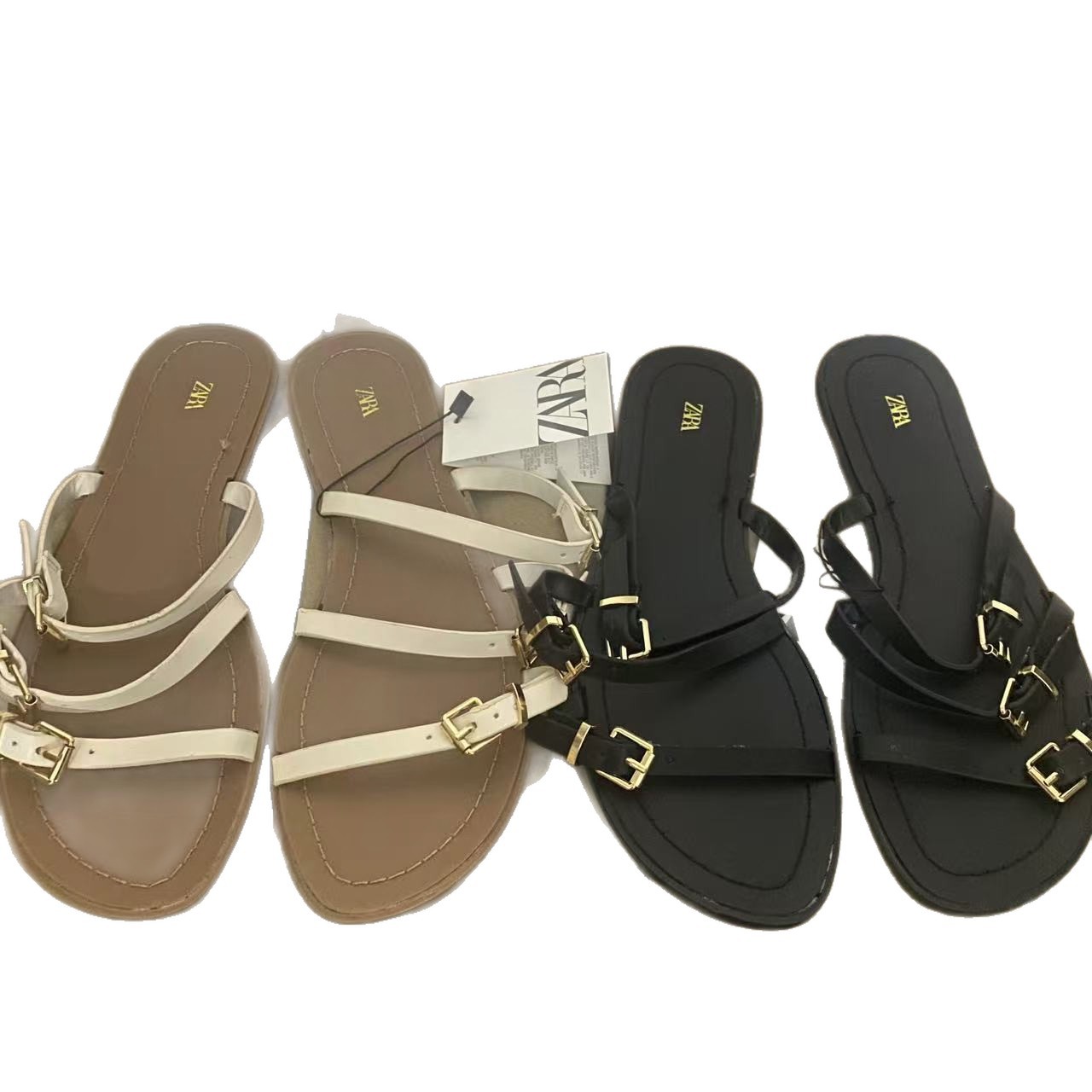 ZA women's flat Roman sandals women's summer 2025 new style women's fashion hundred cross buckle decoration solid color