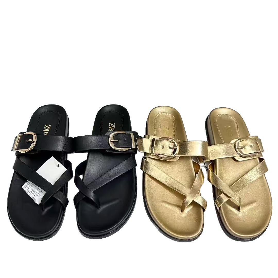 ZA2025 new summer clip on flat sandals, versatile for daily outings, Korean version flat sandals for women