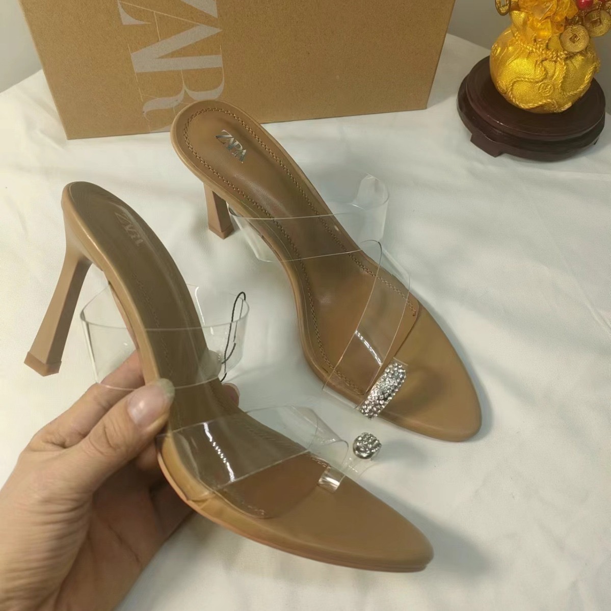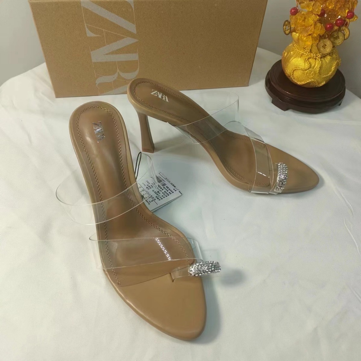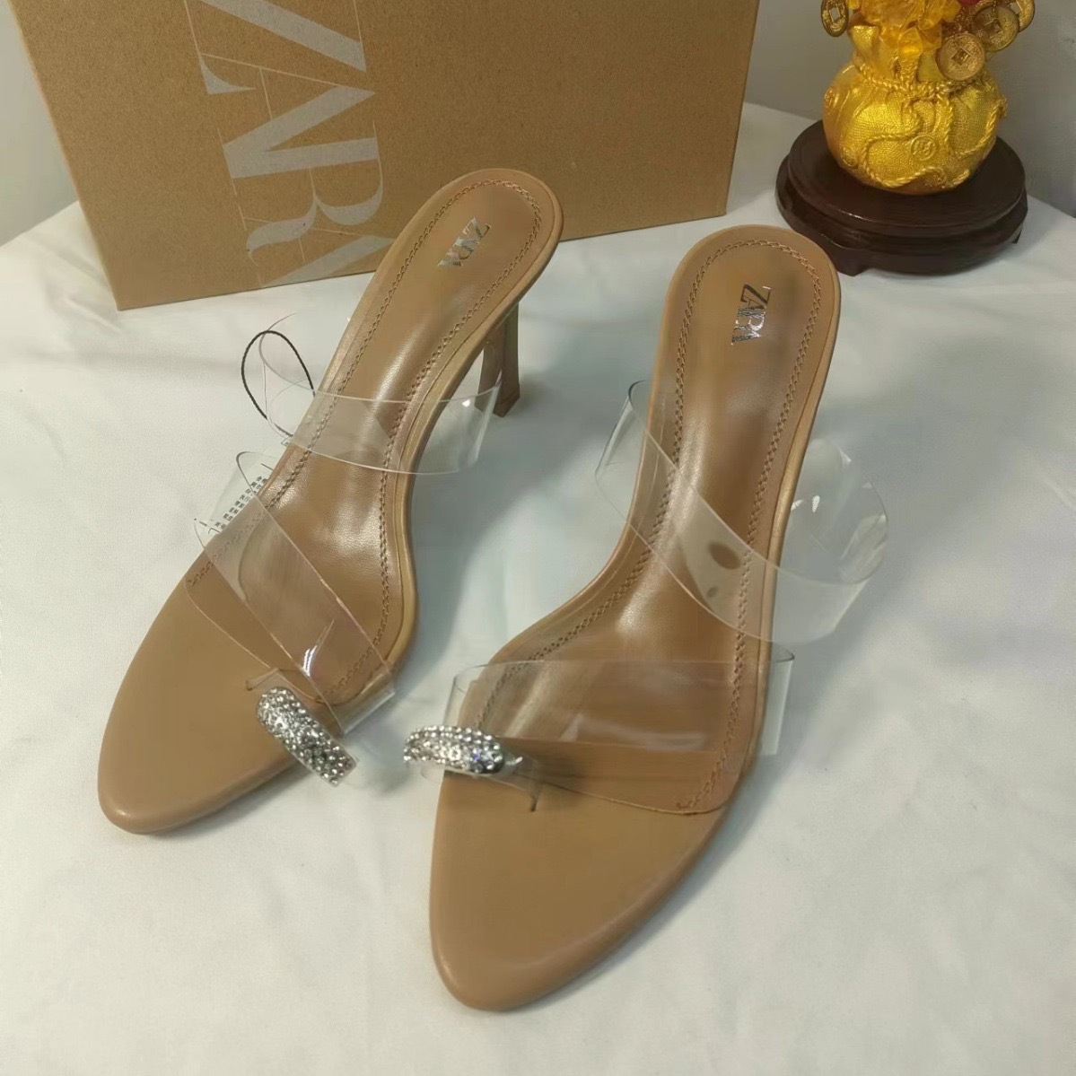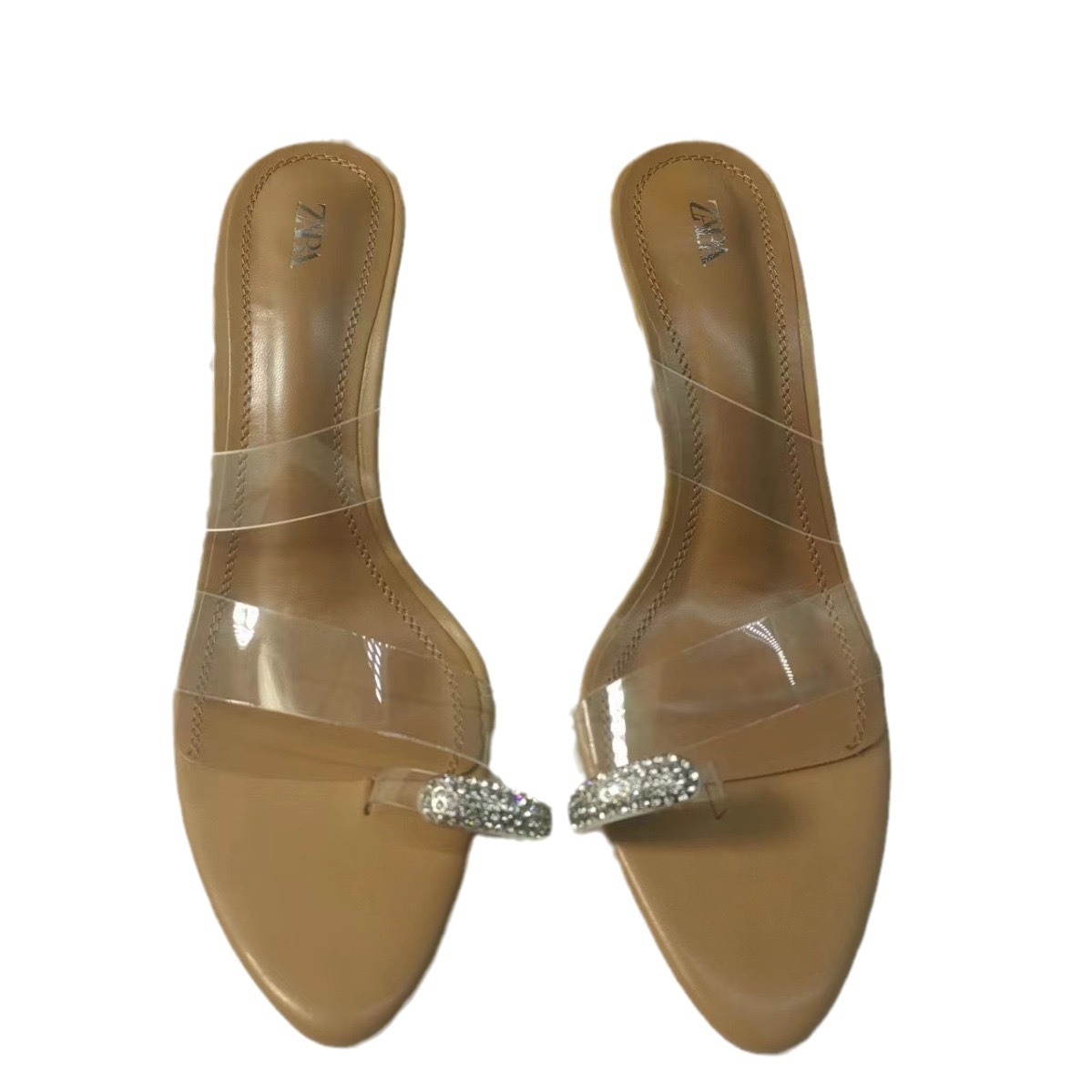 ZAR New 2024 Summer High Heels for Women, Thin Heels, Transparent Rubber PVC Strap Sandals, Round Headed, Back Empty Women's Shoes