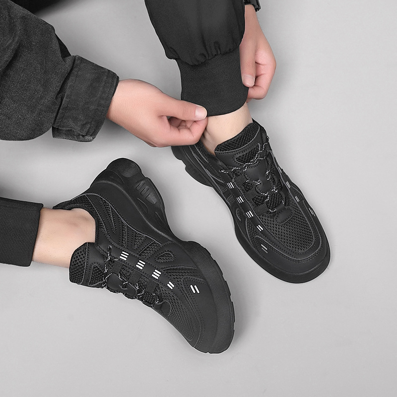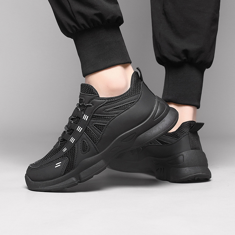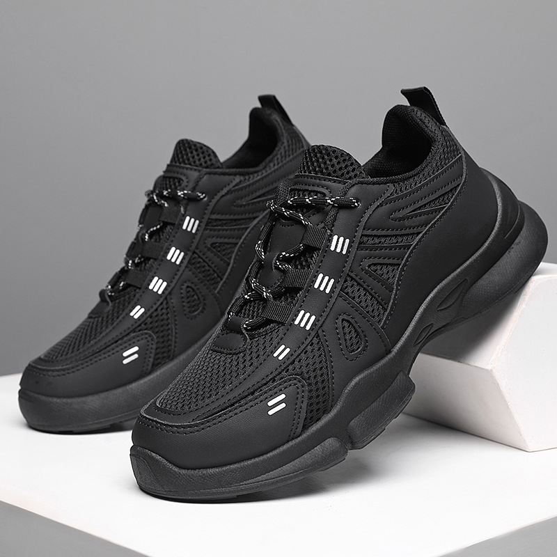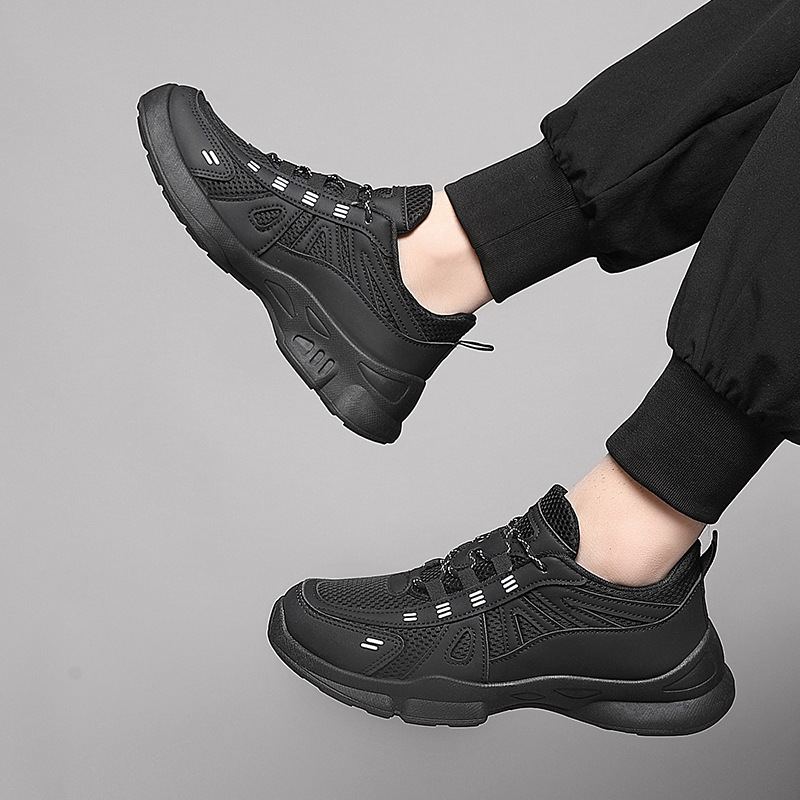 Cross border new men's outdoor sports and leisure shoes with breathable mesh for training and running, black shoes wholesale