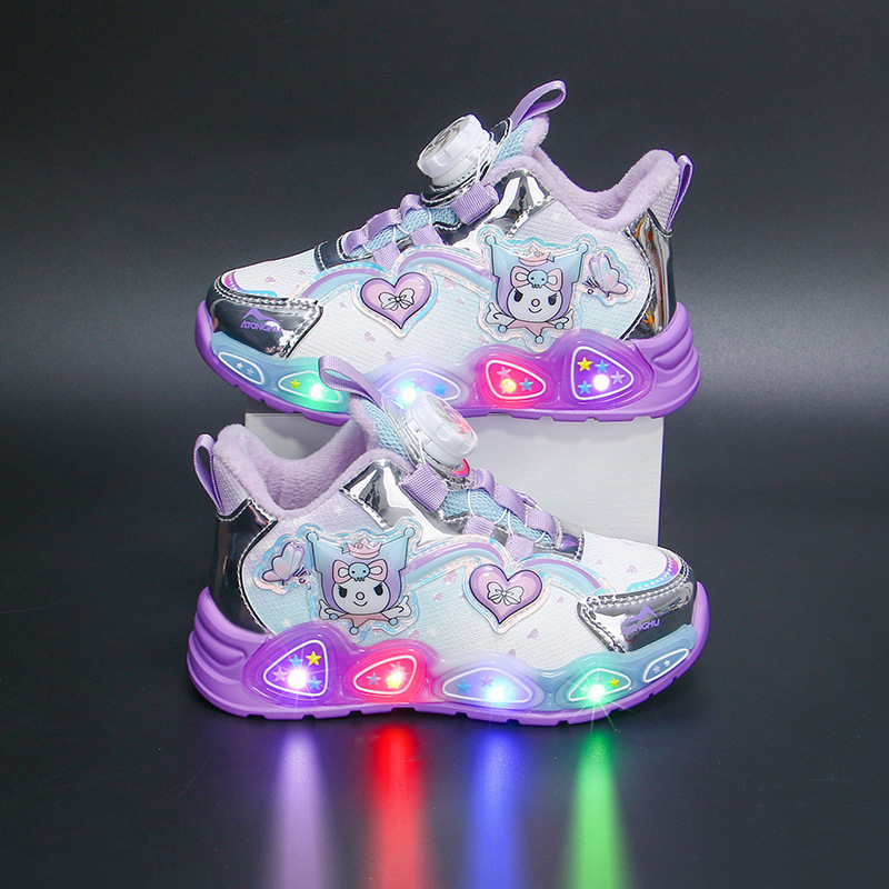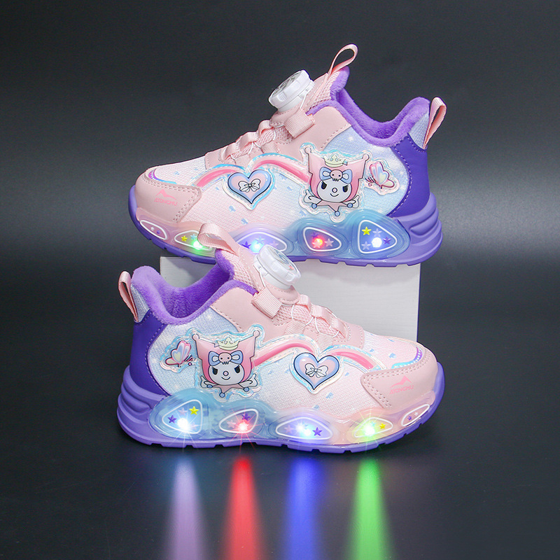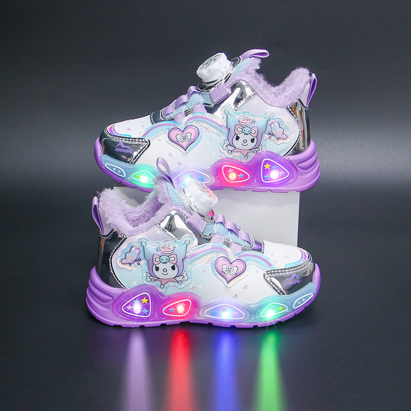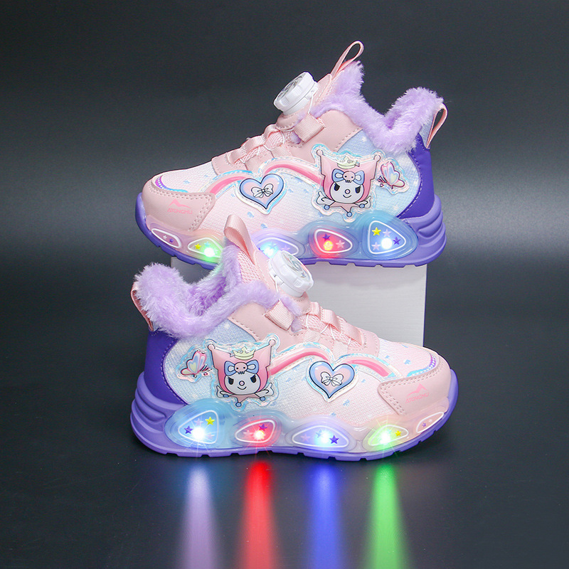 Bright up girls' sports shoes for autumn and winter 2024, new with plush insulation for girls' shoes, small and medium-sized girls' baby shoes