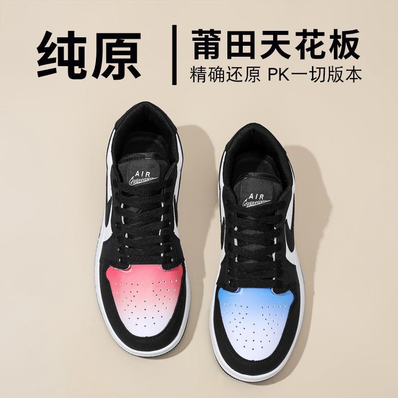 2025 Putian AJ men's breathable casual white shoes low top new versatile blue pink mandarin duck sports gradient color board shoes