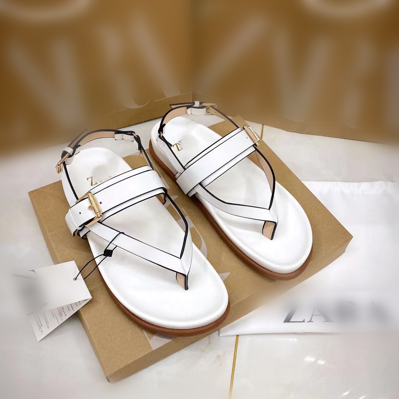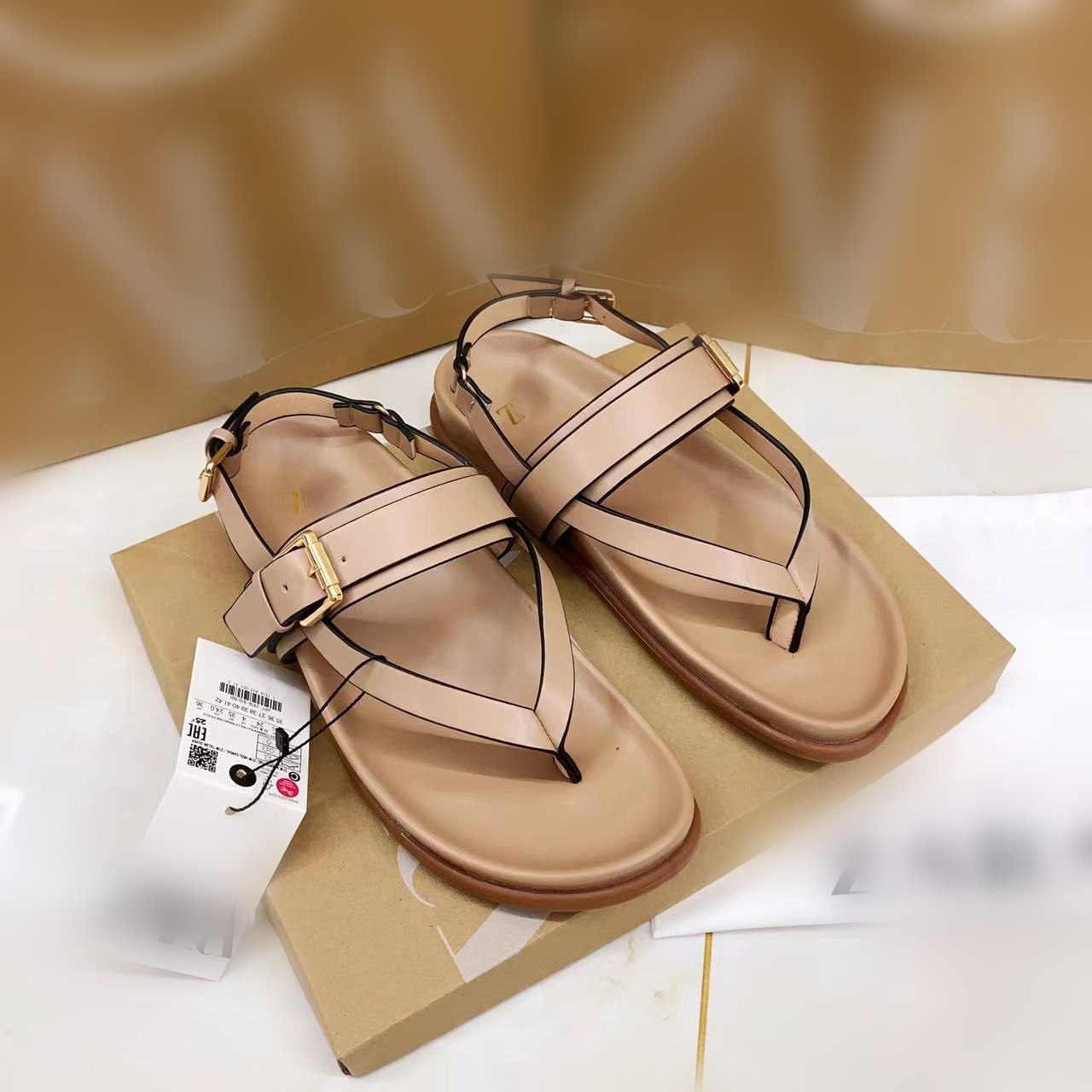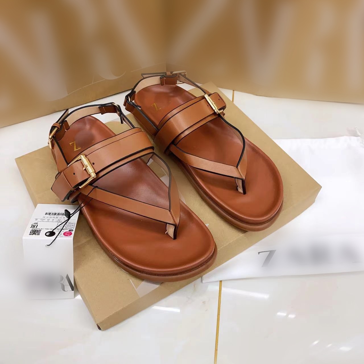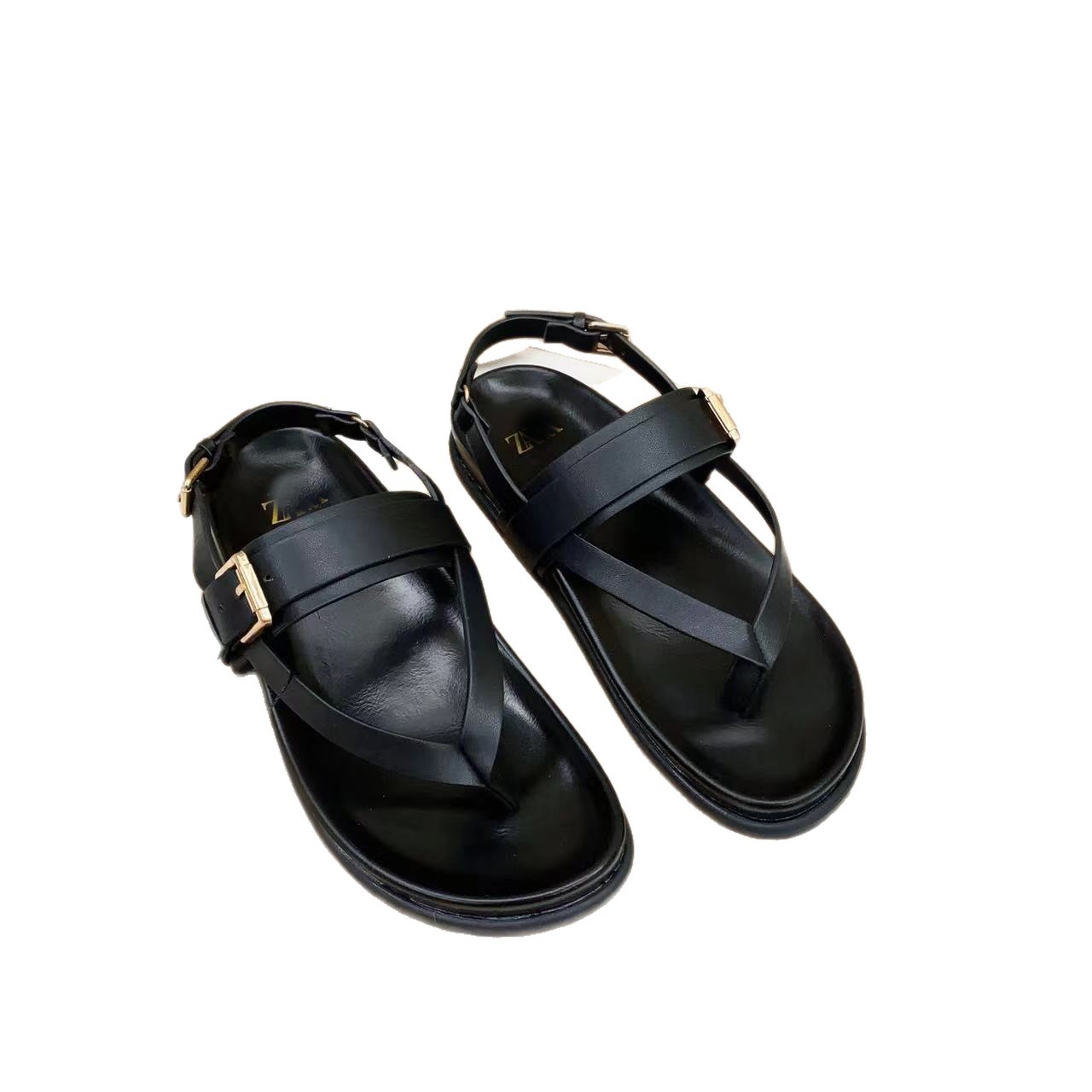 ZA's European and American export solid color herringbone sandals for external wear, simple and versatile round toe thick soled slippers slippers
